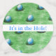Envase de 60 piezas pequeñas, medianas y grandes de confeti con una imagen, a ambos lados, de un putting green y montones de bolas de golf dirigiéndose a agujeros. La cinta blanca tiene el sentimiento de personalizable "¡Está en el agujero!" Ver toda la colección Confetti del Día del Padre en la DECOR | Sección Confetti.
