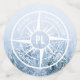 Estrella de brújula con una foto de niebla en un bosque de abeto de invierno helado con emblemas que deambulan por la lujuria, la naturaleza, viajar y explorar que son personalizable para que puedas escribir tus propios textos. En el centro de la estrella se encuentra un monograma personalizado. Perfecto para los amantes de la naturaleza, excursionistas y viajeros.