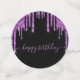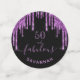 Un fondo negro clásico decorado con un purpurina falso de color violeta oscuro gotea, pintura goteando. Con el texto: 50 y fabuloso x3 y Feliz cumpleaños x3. Personalice y agregue un nombre. Texto morado. El texto: Fabulous y Happy Birthday están escritos con un moderno guión de estilo con letras a mano con toques.