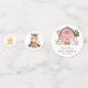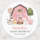 Add a personal touch to your baby shower celebration with these stylish and memorable party items! Design features farm animals (cow, horse, sheep, pig, rooster, chicken) and pink barn on white background.