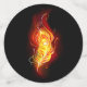 Una brillante pluma de pavo real hecha de fuego y llama sobre fondo negro.