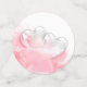 Ilustracion elegante, encantador y romántico con dos corazones de cristal sobre una cama de pétalos de rosa de color blanco.