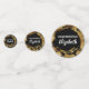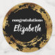 Fondo negro clásico y elegante acentuado por el falso borde del pincel dorado. Confeti de felicitaciones por graduación de estilo moderno monogramado con tu nombre favorito de graduados. Perfecto para un fiesta de celebración de graduación. El color de fondo negro se puede cambiar al color que elija.