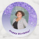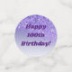 Moda Purpurina morado con gradiente violeta, estrellas brillantes y foto. Ideal para una fiesta de cumpleaños número 100.