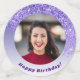 Moda Purpurina morado con gradiente violeta, estrellas brillantes y foto. Ideal para una fiesta de cumpleaños número 60.