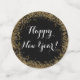 Un confeti negro de decoración de mesa de Año Nuevo Feliz con un diseño impreso de purpurina dorado y un mensaje de guión. Edite usando el editor de texto para hacer su propio mensaje en cada pieza si lo desea. Perfecto para una noche de Año Nuevo informal y elegante para esparcir en mesas y superficies.