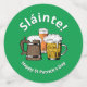 Elegante MESA verde del Día de San Patricio CONFETTI con cervezas personalizado en el centro y Sláinte en texto curvo en la parte superior. Los artículos coincidentes están disponibles en las colecciones ST PATRICK'S DAY y CHEERS & BEERS by Berean Designs.