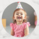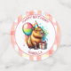 Confeti de cumpleaños con temática de capibara, con fotos, edad y nombre. Un capibara acuarela dulce sosteniendo un globo y un regalo de cumpleaños en rosa y azul.