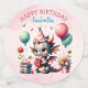 Confeti personalizado para la fiesta de cumpleaños de una niña. Dragón acuático con un gorra de cumpleaños y globos rosa y turquesa, flores, mariposas y regalos. Cuidada para las niñas que aman los dragones.