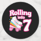 Este diseño de fiesta de patinaje es perfecto para un fiesta de patinaje sobre ruedas o para un tema de cumpleaños para un niño de 7 años. Si al chica de cumpleaños o al niño de cumpleaños le encanta patinar en patines, ¡les ENCANTARÁ este diseño de fiesta de patines! Presenta un estilo retro "Rolling into 7" cita de cumpleaños con un diseño de patinaje fresco con arcos y estrellas que es divertido y único. ¡Un diseño fiesta de patinaje para un 7 cumpleaños!