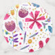 Una moderna pintura acuarela de flores y hojas de colores vivos diseminados en un fondo blanco. Magnífico confetti de coordinación para coincidir con tu celebración.