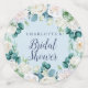 Este clásico confeti de flores blancas azules con ducha de novia es perfecto para una ducha de boda de primavera. El elegante diseño floral presenta rosales blandas de marfil y blanco, peonías y crisantemo con toques de flores de acuarela azul perwinkle y follaje verde. Personalice el nombre de la futura novia.