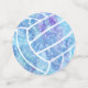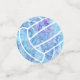 Este coqueto confeti de voleibol tiene un tema de color azul con acentos turquesa y violeta y cuenta con la imagen de un simple voleibol y un patrón de garabato de paisajes, flores y plumas en blanco - personalizable con sus detalles de celebración - de katz_d_zynes
