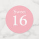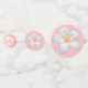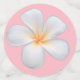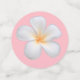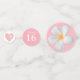 Hermosas flores Frangipani Plumeria, perla y corazón en la mesa de Fiesta dulce 16 dulce rosa claro. El texto puede ser personalizado para boda, aniversario, ducha de bebé, dulce 16 y cumpleaños. Las flores de Frangipani representan belleza y renovación.