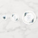 Añada un toque personal a su celebración de la ducha de novia con estos artículos de fiesta elegantes y memorables. El diseño presenta flores de color azul y marino, vegetación y marco dorado sobre fondo blanco.