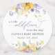 Añada un toque personal a la celebración de la ducha de bebé con estos artículos fiestas de diseño e inolvidables. El diseño presenta flores de color morado y amarillo y vegetación sobre fondo blanco.