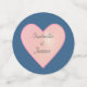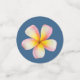 Flores de plumeria rosada Frangipani y corazón en el Boda azul galardonado Table Confetti. El texto se puede personalizar para boda, aniversario y cumpleaños. Las flores frangipani representan la belleza y el amor perfecto.
