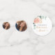 Un fondo blanco chic decorado con una flor dorada rosa, rosa y verde eucalipto. Personalice y agregue una foto y el nombre de la novia.