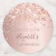 Un fondo dorado rosa decorado con un polvo falso rosa de purpurina dorado. Personalice y agregue una fecha y un nombre/evento. Letras de color oro rosa oscuro. Algunas papitas de confeti con nombre y fecha, otras con cruz. Añade tu propia foto en dos de las fichas.