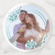 Una invitación moderna y sencilla con un cuadro en una flor azul turquesa. El fondo es blanco degradado y gris