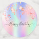Confeti giratorio y femenino para tu mesa de cumpleaños número 21 (o cualquier edad). Un fondo de color arcoiris, holográfico, morado, rosa, dorado rosa y verde menta, decorado con estrellas que gotean. Personalice y agregue una fecha y nombre/edad 21. Letras de color gris. Algunos confietti con nombre y fecha, otros con el texto: Feliz cumpleaños escrito con un moderno guión escrito a mano con chispas. Añade tu propia foto en dos de las fichas.