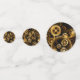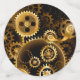 Sin soldadura, metalizado, latón, engranajes dorados sobre un fondo oscuro y oxidado. Estilo Steampunk.
