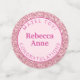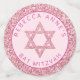Vestir las mesas del fiesta Bat Mitzvah con este confetti de mesa personalizado de cristal rosa con falsas imágenes purpurinas - ¡la sensación de brillo sin el desorden! Este cuadro de diálogo incluye un lugar para la foto de su hija, dos piezas con texto a personalizar y una pequeña ronda para una carta monográfica. Fácil de personalizar, este confetti de imitación purpurina Bat Mitzvah, rosa y rosa, es otra forma de darle un toque personalizado a su decoración fiesta.