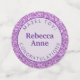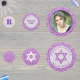 Vestir las mesas del fiesta Bat Mitzvah con este confetti de mesa personalizado en violeta glam con falsas imágenes purpurinas - ¡la sensación de brillo sin el desorden! Este cuadro de diálogo incluye un lugar para la foto de su hija, dos piezas con texto a personalizar y una pequeña ronda para una carta monográfica. Fácil de personalizar, esta mesa de confetti de imitación de Bat Mitzvah, lavanda pastel y purpurina púrpura, es otra manera de darle un toque personalizado a su decoración fiesta.