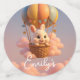 Espolvorea alegría extra en tu ducha de bebé con este diseño festivo con un conejito adorable en un globo de aire caliente, nubes rosadas de ensueño y acentos coloridos. Perfecto para decorar mesas, favores o ambientes fiestas, esta original obra de arte añade encanto, personalización y espíritu de celebración a tu evento. Con el texto en personalizable, cada detalle se siente atento y coordinado, creando un ambiente mágico para que los huéspedes lo disfruten.