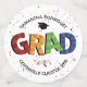 Todo se trata de los colores llamativos mientras tu graduado sale al mundo. La palabra GRAD en cuatro colores cortada en segmentos con fondo de confeti. Patrón de rojo, verde, azul, amarillo, negro y blanco en triángulos de medio cuadrado forma el borde. En general, un gran festival para invitaciones o suministros de fiesta. Personalice con el nombre del graduado, el año escolar y el año de clase. Productos a juego disponibles.