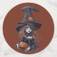 Digitales Design einer Hexe mit Kürbissen. Ideal für Halloween.