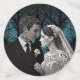 Hermosa pareja boda en un árbol azul de la vida 15 cm Badge cuadrado