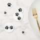 Confetti con huellas de pata de mascota negro impresas en un fondo blanco. Cambiar la impresión de la pata y el color de fondo en la herramienta de diseño.