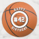 Confeti de baloncesto blanco, negro y naranja de feliz cumpleaños para los aficionados al deporte / hombres y niños. Personalizar el texto para que se ajuste a tu ocasión y añade tu número de jugador.