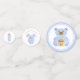Decoración de mesa divertida para la ducha de un bebé, este conjunto de confetti presenta un elegante guión azul y acuarelas azul pastel y dorado de un carrito de bebé retro, oso de peluche, botella de bebé, un traje de una pieza y un mecedor. Se puede personalizar el texto en el carruaje (nombre del bebé, "Bienvenida", "¡Es un niño!"), en el oso de peluche ("¡Gracias!"). y por encima de la ropa de bebé ("¡Gracias por venir!" "¡Gracias por manejar!" "¡Oh bebé!", etc). También puedes añadir el nombre de la futura madre y la fecha de la ducha.