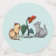 Dos gatos pequeños juegan con una flor alta