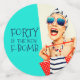 Un confeti de cumpleaños escandalosamente divertido y único para una fabulosa mujer que celebra su cumpleaños 40, este diseño presenta a una elegante mujer kitsch con gafas de sol a rayas y turbante de pelo con una bolsa de punto de polka y una toalla rayada, que mueve su actitud. El humor se lleva a cabo con el título en negrita "CUARENTA ES LA NUEVA F-BOMB". Personalice el nombre con el fabuloso Chica de cumpleaños. La combinación de colores retro, como el agua, el beige, la marina y el rojo, contribuye a la diversión de este diseño.