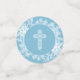 Confeti Lazo blanco sobre la tabla de bautismo azul pastel