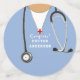 Decoración creativa de fiestas de salud para la celebración del grado de médico o escuela de medicina que incluye matorrales azules de hospital y estetoscopio. Para personalizar el texto de edición para agregar el nombre del médico.