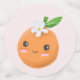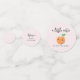 Pequeño y cortito confeti de una ducha de bebé con un dibujo a mano de un fruto naranja con una flor blanca en la cabeza. El texto dice "un poco de corbata está en camino". Perfecto para una ducha de chica.