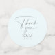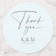 Un patrón de mandala de encaje en un gradiente de azul de huevo de ladin suave y gris cálido junto con el fluido texto del guión le dan a esta elegante suite nupcial su atractivo lujoso. El personalizado 'Gracias' que se muestra aquí le permite editar fácilmente sus iniciales y fecha de boda utilizando la plantilla proporcionada. Busque ID968 para ver todas las piezas coincidentes en este hermoso conjunto de bodas.