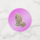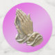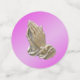 Un diseño elegante y elegante de manos con palmeras apretadas rezando en un bonito cobre falso sobre un fondo rosa pálido de dos tonos.