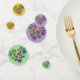 Colofrul Mardi Gras confetti en colores brillantes arcos de cinta en verde brillante, amarillo y violeta