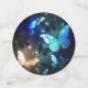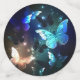 Fabuloso, brillante, azul y amarillo, mariposa nocturna sobre fondo oscuro.