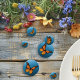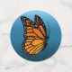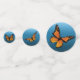 Mariposas monarcas elegantes en naranja contra un fondo oscuro azul, creando un diseño romántico e inspirado en la naturaleza. Ideal para los bodas al aire libre, al aire libre o con motivos de mariposa.