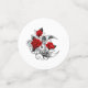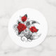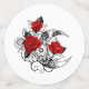 Contorno, luna de media luna mecánica con engranajes, decorada con rosas rojas con tallo negro y hojas sobre fondo blanco. Steampunk