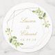 Confeti de mesa de boda diseñado a medida con marco dorado geométrico moderno y diseño de vegetación en acuarela. Personalice con las fotos, nombres y fecha de la boda de la novia y el novio. Perfecto para decorar la recepción de la boda, la cena de ensayo y las mesas de la fiesta de compromiso.