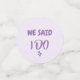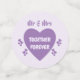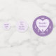 Perfecto para que un boda morado y lila se esparza en las mesas de la recepción. Diseñado con corazones. Añada los nombres de Bride y Groom y sus iniciales y fecha de boda.