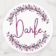 Muestra tu gratitud con estos confeti de tres tamaños de moda. Tiene un diseño de media hoja de flores en tonos violeta sobre un fondo blanco y diferentes tonos violeta. En el centro está la tipografía escrita a mano con el agradecimiento alemán "Danke". Puedes usarlo para bodas, duchas para bebés y otros requisitos universales de agradecimiento.