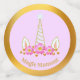 Bello confeti de mesa de unicornio de momento mágico en colores violeta y amarillo decorado con flores y puntos dorados. Ideal para cumpleaños, cena romántica, compromiso, aniversario, boda y cualquier otra celebración mágica. El texto del momento mágico se puede personalizar.